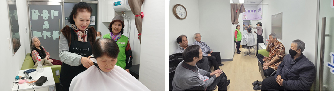 복지관 이용 노인을 대상으로 이미용 서비스를 제공하여 위생 및 청결을 지원한다.